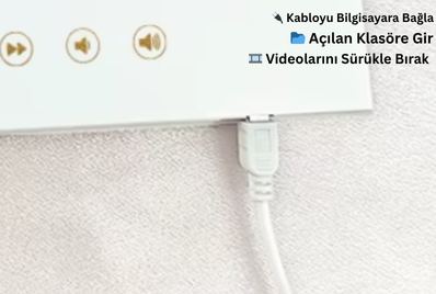 - Aktarın: Video dosyalarınızı, tıpkı bir USB belleğe atar gibi bu klasörün içine sürükleyip bırakın. (Dilerseniz mevcut videoları silebilir veya yenilerini ekleyebilirsiniz).